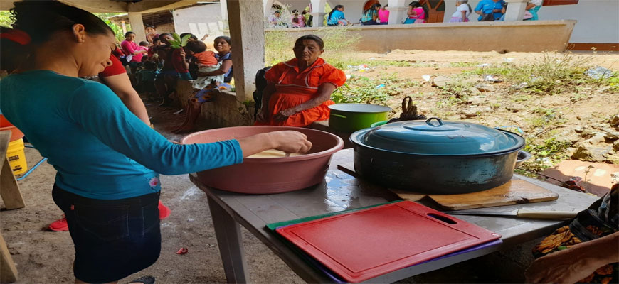 Preparación de alimentación para personas adultas y niños con bajo peso en Aldea Laguna de Cayur.