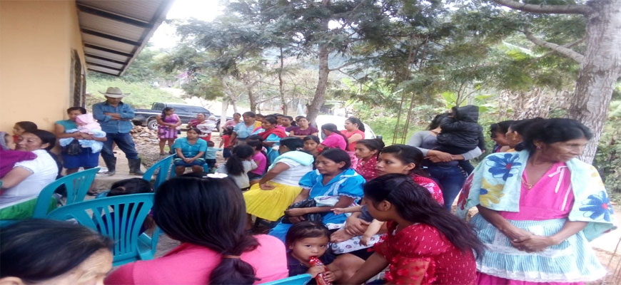 Reunión con mujeres para monitoreo del avance de bordados en manta