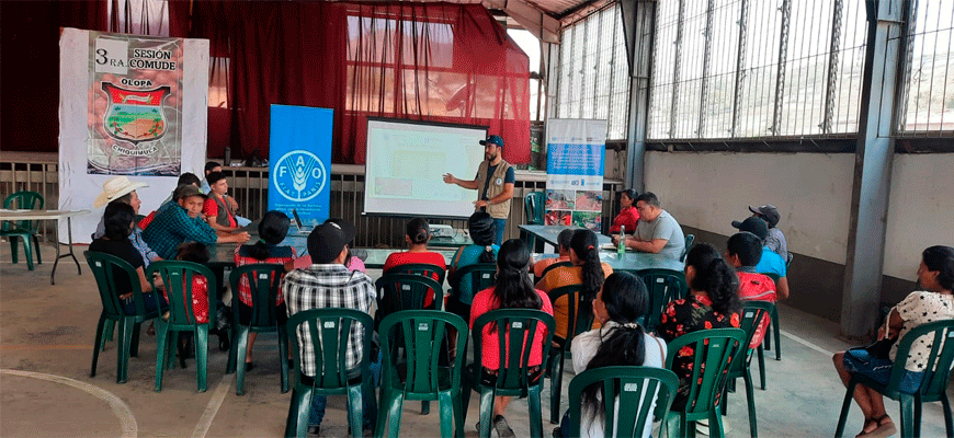 En el Salón Municipal, del municipio de Olopa, departamento de Chiquimula, la Administración Municipal 2020-2024, en el 2023, a través de la Unidad de Seguridad Alimentaria y Nutricional -UMSAN-, con el apoyo de la Organización de las Naciones para la Agricultura y la Alimentación -FAO-, hicieron entrega de semillas para hortalizas a coordinadores de las comunidades que conforman la MICROCUENCA CAYUR, consistente en semillas de cebolla, cilantro, pepino, rábano, lechuga, repollo, acelga, chipilín, apio entre otras, y estos la distribuyan entre las familias para que elaboren sus respectivos huertos los cuales servirán para el beneficio propio y al mismo tiempo contribuir con la economía familiar.