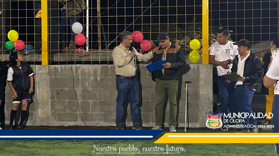 En donde tuvo presencia el Señor Alcalde Municipal, integrantes de la Comisión Municipal de Deportes y personas homenajeadas por su participación en el deporte Olopense.